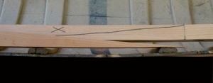 Overlap the bow and stern pieces and mark the position of the scarf joint on the stern piece for the inwale.