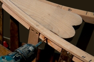 Decks – Even though Rushton decks are short, the solid cherry is soaked, steamed, and bent to fit the upswept sheer line at the ends.