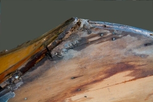 Often, the damage is not apparent until the end is taken apart. Only then can you see the rotted inwale-ends and stem-top.