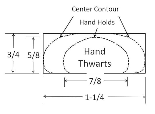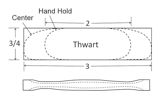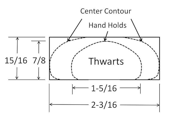 Thwarts – Old Town Canoe Company thwarts are beautiful, with smooth shaping and elegant form throughout. The thwarts are made of either mahogany or white oak 7/8” (22 mm) thick and are 2-3/16” (54 mm) wide. Hand thwarts at each end like small thwarts. They are 1.25″ wide and 3/4″ thick.