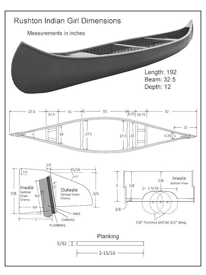 John Henry Rushton built canoes and small boats in Canton, New York, from 1875 until his death in 1906. His son incorporated the business and kept it going until 1917. In 1902, Rushton hired M. Roundry from the B. N. Morris Canoe Company to build canvas-covered canoes. The result is the Indian Girl canoe that became Rushton’s best-selling model. It was first built with double gunwales until about 1906, when the open-gunwale system was adopted. The dimensions for components in a closed-gunwale Indian Girl (c. 1905) present pocketed inwale construction.
