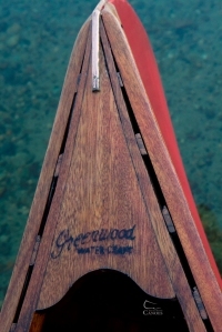 Not surprisingly, the lines and details of Greenwood Canoes borrow heavily from the “Maine Guide” canoes of Old Town and other builders in Maine. They all sport wide, flat bottoms and have very little rocker. The stem profile is heavily curved (often forming a complete half-circle similar to the stems on “Huron” canoes built in Quebec) and the hulls all contain a lot of tumblehome. Bill’s 16’ (4.9 meter) canoes did not have a centre thwart, but instead had both bow-quarter and stern-quarter thwarts as was typical of Maine Guide canoes. Many of the canoes had bottoms reinforced with half-ribs between the main ribs to create a strong comfortable floor. And Bill absolutely refused to make a canoe without a keel. In fact, one of my clients asked Bill to leave the keel off the canoe he was ordering. Apparently, Bill said something like, “My canoes have keels.” When my client told Bill that many Chestnut Canoes paddled very well without a keel, Bill said, “If you want a Chestnut canoe, then buy a Chestnut canoe.” My client told me that story while I was preparing the restoration work order on his 17’ (5.2 meter) Chestnut Cruiser.