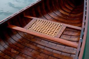 Seats – The stern seat is a trapezoidal and is attached directly to the under surface of the inwales. The seat frames are solid cherry.
