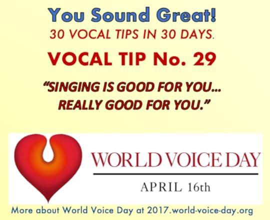 30 Vocal Tips in 30 DaysDay 29: Singing is Good for You. Really Good For You.In the interest of keeping this short, I’m not going to list my sources. But every claim on the following list is backed by research. You can google them.Singing: