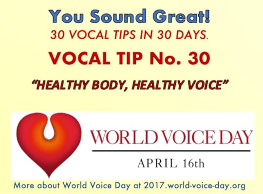HEALTHY BODY, HEALTHY VOICE:Let’s start on the ground floor. Your voice is an organ; a valve in your respiratory system. As such it relies on the systems of your body - your neurological, respiratory, vascular, endocrine, muscular, and skeletal systems - to be healthy and function well. If something is out of whack - or not optimally healthy - with any of the systems in your body, it will affect your vocal health and functioning as well. Like anything else, it can’t function optimally if it’s not optimally healthy.TAKEAWAY:Exercise, proper hydration, meditation, and good nutrition will all have positive effects on the sound and function of your voice.