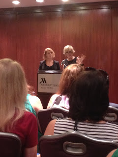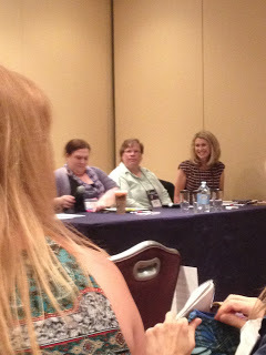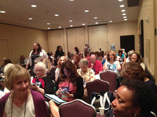 This morning was keynote speaker Julia Quinn. It was a fabulous speech, and she's actually quite funny. It's weird when you hear an author that you like speak, and then go read her books, you can really tell how her personality comes out in her writing. Or he, if the author you like is a man..:)