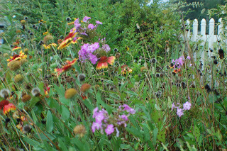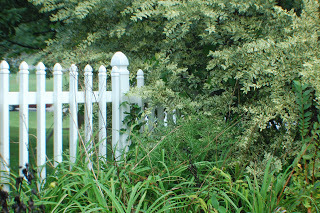 It's a little taken over by weeds, but still nice. I love the white picket fence.