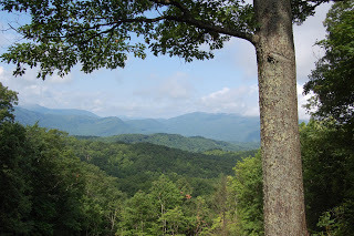 View from the top...:) You can't walk to a waterfall without crossing over a mountain in the Smokey Mountains.