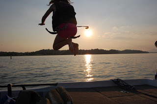 My daughter jumping in for a morning swim. Interestingly, the water temp was warmer than the air temp. So much so that it felt like bath water..:)