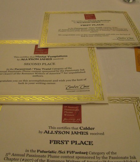 On Thursday night, my Allyson James self won a couple Passionate Plume award (Passionate Ink Chapter):