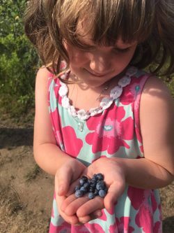 I just put a quart of wild Maine blueberries in the freezer. I know I’ll love having them when it’s frosty outside! They’re a family favorite, whether for pies, muffins, cobbler, pancakes or sprinkled fresh on yogurt or cereal. We love cultivated blueberries, too, but wild berries bring back many special memories. The photo below is of my granddaughter a few years ago in a coastal Maine wild blueberry patch.