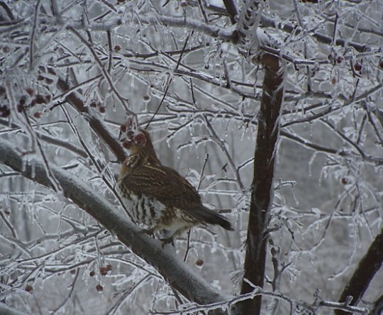 Icy day today but just had a visit from a cute grouse to our crabapple tree.