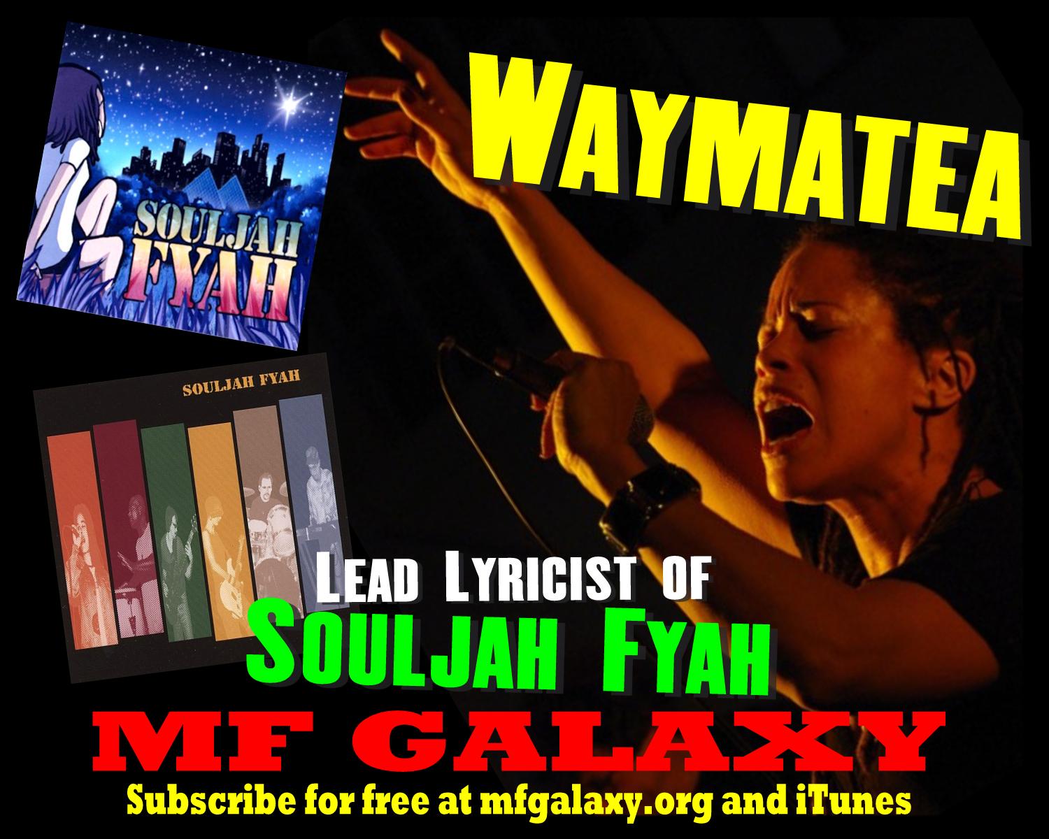 What poets and prose writers who want to try songwriting need to understand to find artistic success Her practice of editing lyrics, and the magical mindsetfor creating those lyrics in the first placeThe power of ironic contrast between lyrics and melody The business of running a band, and the surprising first business move Waymatea made when she formed Souljah FyahHow her professional school teaching background shaped the way she ran her band, and when and why that stopped working Her unexpected advice for how millennials should promote their bands, andThe amazing power of early adopter super-fans Waymatea spoke with me on December 3, 2014 by Skype from her home in LA—that’s Leduc, Alberta.
