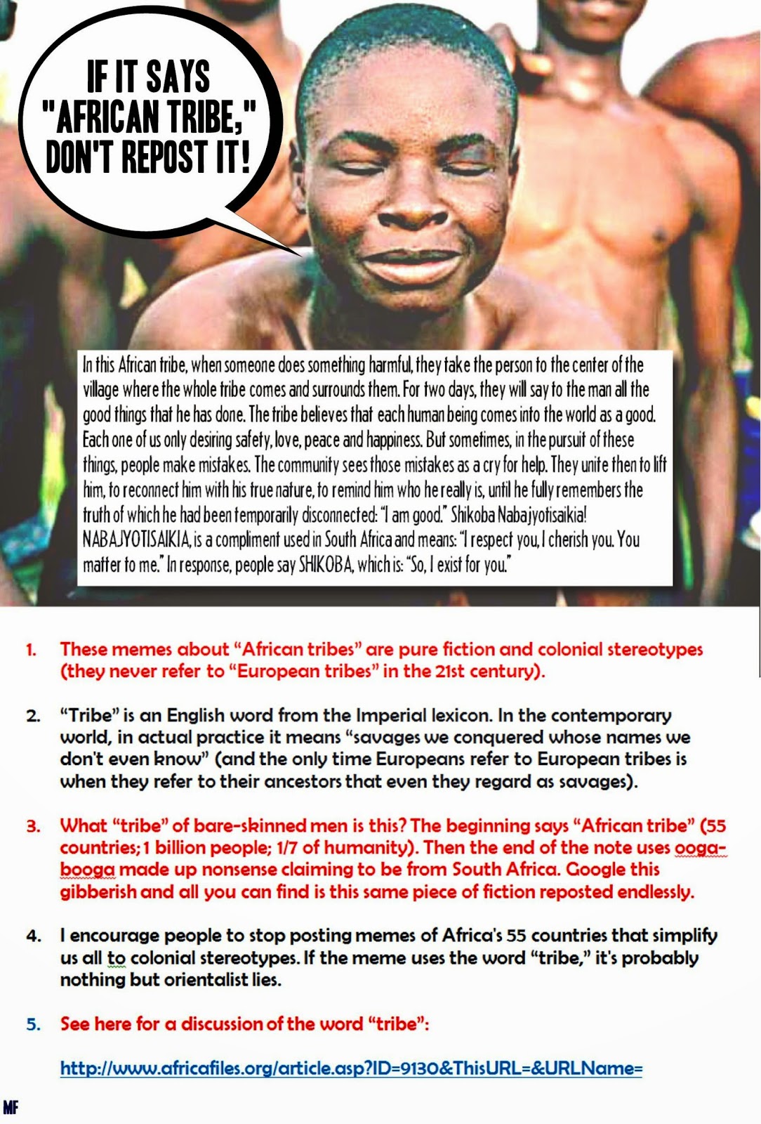 If it says "African tribe," don't repost it!