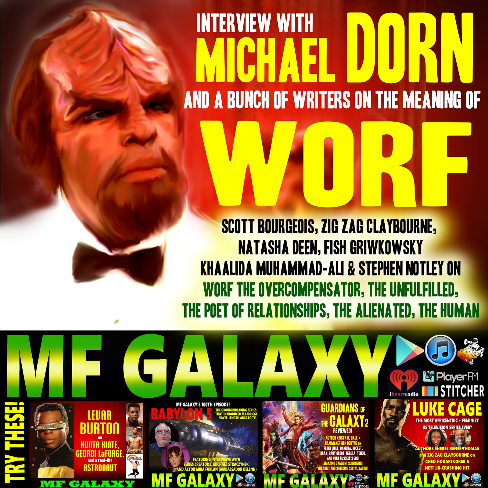Around 1992 in Edmonton, I met Michael Dorn at a science fiction convention, and my friend Fish Griwkowsky was there to photograph the chance-encounter and the interview that followed. I say “chance encounter” because I was making a call to my friend Steve Notley from a payphone near the parkade just as Dorn was walking in. I said, “Michael?” He looked up and boomed “Yes?” and I hung up on Steve and asked for an interview. So in today’s episode you’ll hear that interview, and also the reflections of several writer friends on what Worf means to them, including: