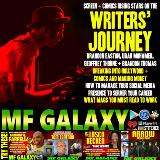 Many thanks to DeWayne Copeland who recorded the video for this conversation. You can find the complete video online at MFGALAXY.org and a link to Copeland’s work, which includes my MF GALAXY conversation with him about his superhero web TV series CV Nation! And now on MF GALAXY, Brandon Easton, Geoffrey Thorne, Ubah Mohamed, and Brandon Thomas with the Writer’s Journey!