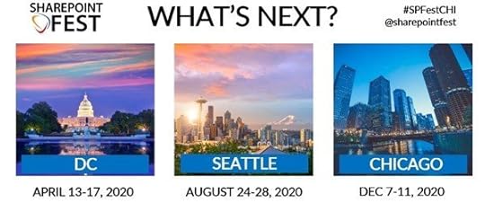 Washington DC: April 13th – April 17th, 2020 > https://www.sharepointfest.com/DC/ (Read about my sessions here)Seattle: August 24th – 28th, 2020 > https://www.sharepointfest.com/Seattle/Chicago: December 7th-11th, 2020 > https://www.sharepointfest.com/Chicago/SharePoint Fest has 3 days of sessions, with 2 days of conferences. This event is a bit smaller in nature (~500-700 attendees) but this makes it easier for attendees to spend time with the speakers and get their specific questions answered, which is awesome. Another cool thing about the SharePoint Fest workshops is that there are both Full Day, and Half Day workshops for you to choose from, allowing you to cover two topics in the same day.