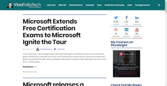 About Vlad Talks TechOn the new site, you can expect the same type of content that is currently on here, everything SharePoint, Microsoft 365, Certifications, PowerShell and Pluralsight! I will keep working on updating the Certification Study Guides (hopefully 3-4 more by the end of the year) as well as a lot of technical blog posts that have been in the pipeline for too long! Don’t worry, even if SharePoint is not in the URL anymore, SharePoint is more alive than ever, and it’s still my main passion, so SharePoint content will not stop!