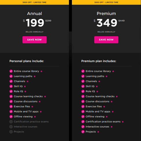 Both the Annual and Premium are 100$ off, and here is the difference between the plans!