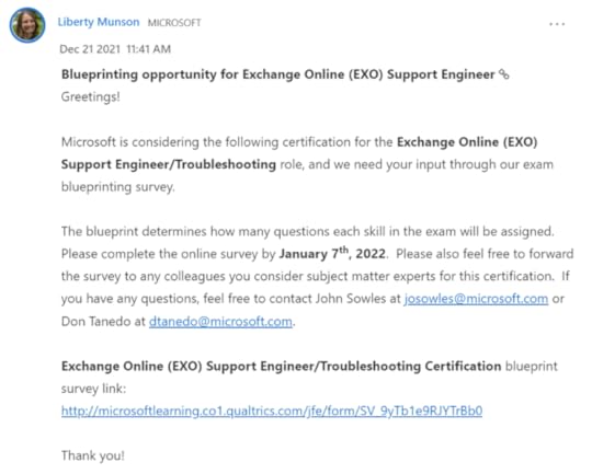 #2 – Exchange Online (EXO) Support EngineerOur next possible certification for 2022 is in the Support Engineer category. Back in July 2021, Microsoft announced the first certification in this new type of portfolio , and they said Teams will be the first one of many in this category – and I think we found our next one!