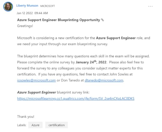 #3 – Azure Support EngineerOur third possible 2022 certification is the Azure Support Engineer certification! This would be in the same category as the previous one, and Microsoft did post that they are considering it.