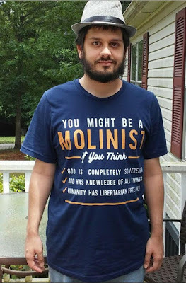 So, my friend Chan Arnett sent me one of the novelty T-shirts that he's been selling on Amazon.com. The theme of these T-shirts is Molinism and he's been advertising them in the Facebook Group "Molinism - Official Page" You can get yourself an awesome Molinist shirt for a reasonable price of 20 bucks if you go over to Amazon.com. So far, he's got at least 2 different kinds, but I think he plans on creating and producing more. Quite frankly, I'd like to have a T-shirt with Luis De M...