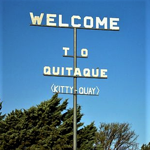 Then, on the other side of the state there’s Quitaque, which is apparently the Official Bison Capital of Texas. They also, apparently, got tired of passers-by mispronouncing their name, because before you even get into town the welcome sign tells you how to say it.