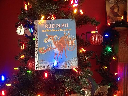 Yes, that is a book in our family Christmas tree, one of several tucked throughout the branches. I have more Christmas picture books along the mantel and across the room on the bookcase. For the purposes of this post, I discovered that I have forty Christmas books. Each year I buy a new release, and with the copyright page as the record of the year, I can reference when I bought each book. The one above predates even me, having been published in 1949. It might even be a bit of a rare book, since the Wikipedia entry on Rudolph declares the first children's book was published in 1958.I remember reading it to myself in grade two. It was a glorious moment because I recall that the previous year, the text had been a meaningless march of letters and spaces but that now it all made sense. I'd unlocked the code to reading, and I could claim Rudolph's story as my own. The story of a young buck whose shame became a gift.And ain't that the truth about us all? Reading and writing are my passions, but for all my life, I lacked the courage to claim them. It's a well-known that you can't make a living from writing but I got it in my head that to justify the time I took to write, then I must at least make it pay for itself. So for a number of years, I freelanced, compiling a portfolio of newspaper and magazine articles. I felt I had to justify my writing to myself and all those reindeer with their noses not so bright.Then I wrote a novel, good enough for a publisher to request I re-submit after a rewrite. I didn't do it because I thought that they were just being nice. Little did I know that publishers aren't in the business of being nice. Or maybe I didn't feel worthy, I dunno.I've written half-finished novels and first drafts. This year, I wrote a novel and published it. People around me made way more of a big deal about it than I did. Last week I received validation from a well-recognized publisher that my work really is good, and I tried to celebrate it with colleagues and family but once again I find myself dismissing the recognition even though it was the news I'd wanted.I think a lot of us are ashamed of our gifts because we believed others who said that our gift wasn't worthy. Quilt makers, woodworkers, sculptors, fashion designers, architects, game designers--how many Rudolphs didn't have the chance to lead others, to make them see, to help bring joy to others?What is your bright nose? And do you lift it up to cast a light onto the world?I'm no Rudolph yet but I'll try to do a better job of leading my sleigh.