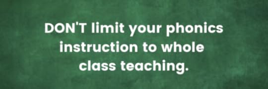 Next, teaching phonics systematically and sequentially takes a lot of time. If teachers aren't sold on systematic sequential phonics instruction for early readers, these phonics lessons they have to teach may feel like wasted time. They may start to resent them because it crowds out time that they want to spend reading aloud to their students, letting students explore books on their own, meeting with students in small groups, and so on.