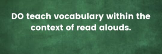 Even when we do intentional vocabulary teaching through read alouds, our goal is to get in and out quickly. That is, we don’t want our vocabulary teaching to interfere with our learners’ enjoyment of the story.