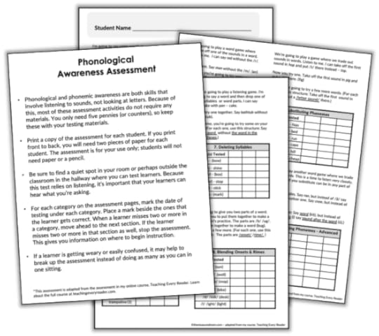 When you do that, when you sign up for my newsletter and get the assessment, you will get a special offer for my Phonological and Phonemic Awareness Super Bundle. This includes rhyming activities, syllable activities, a huge bundle of phonemic awareness activities, a nursery rhyme pack that helps kids get excited about reading and matching words to print, my second nursery rhyme pack, which was just recently published, as well as personalized emergent readers. With these you can type in student names and then their first name is always the first word on each page. That's a great resource also for developing concept of word. Go head over to get that free assessment, and then after you do that, you'll be given this special offer to get the bundle for 70% off!