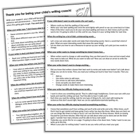 I'm going to include in this podcast episode a freebie for you! The freebie is tips for parents, as in, what to say when. I'm going to include them for different grade levels. You can take them and share them with parents. They'll be things like: what to say to your first grade writer when your child doesn't know how to spell a word, what to do when your child doesn't know what to write about, what to do when your child isn't using periods, etc. It won't be long, but I'm hoping that this little guide will help you support parents as they support your students.