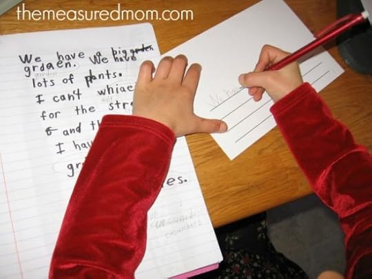 Don’t insist that the work is perfect. Your child needs to spell his/her best. “Invented spelling (also called “developmental” spelling) is necessary for this age. Follow these tips for using it well.