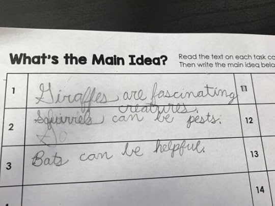He often came up with a main idea that was much too specific. Together we looked at the sentences in the paragraph to make sure they all supported his main idea. If not, we knew we needed something different.
