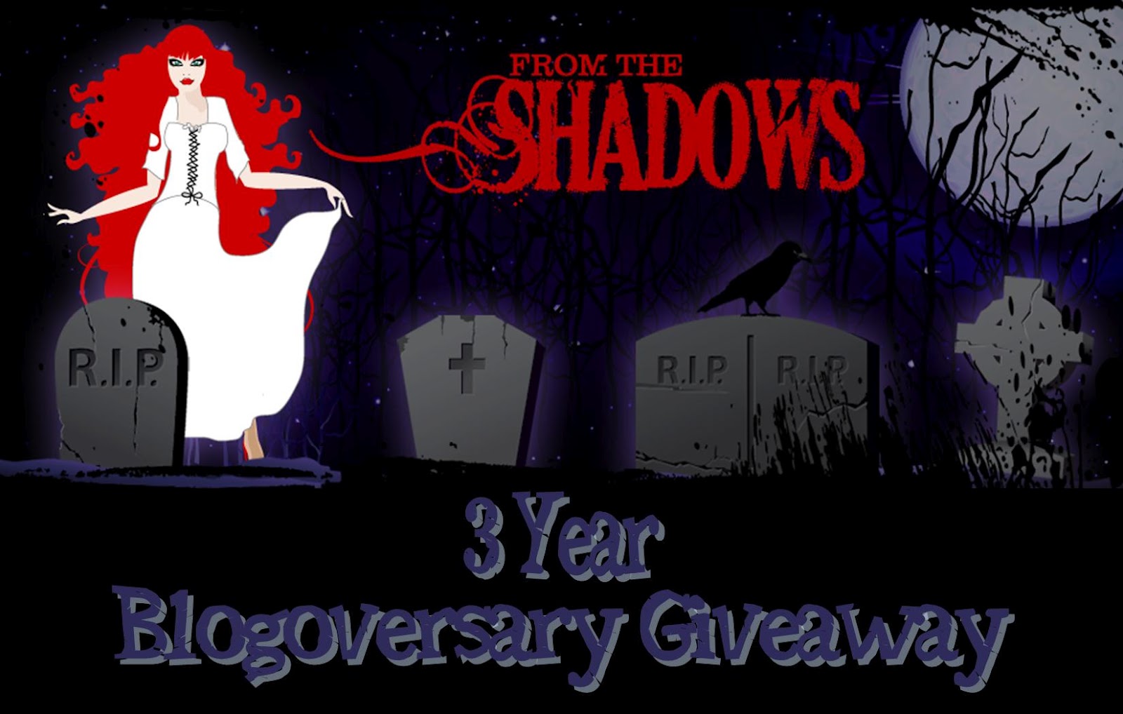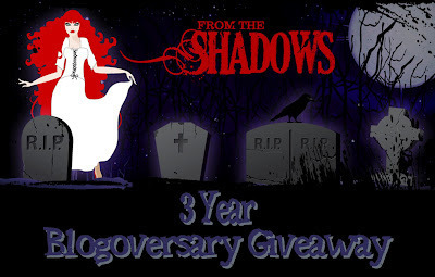 Since we're celebrating 3 years of blogging here at From the Shadows, there will be a rare chance for a bonus entry (as you may know, I like to keep my giveaways simple).