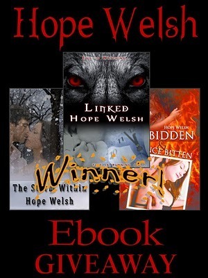 Congratulations BLHmistress winner of our Hope Welsh Ebook Giveaway ! BLHmistress will receive three ebooks by Hope Welsh, Linked
