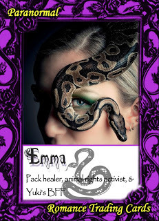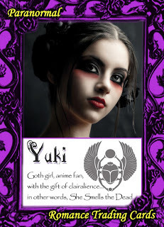 Romance trading cards are the new big thing (click here to learn more about RTCs) so I decided to design character cards for each book in the Spirit Guide series. A limited run of physical cards will be available later this year.