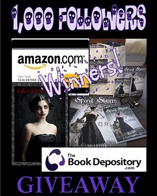 , "I Smell Dead People" t-shirt (size XL), She Smells the Dead bookmarks, Spirit Storm poster, and Spirit Guide Series postcards.Thank you to all who entered!
