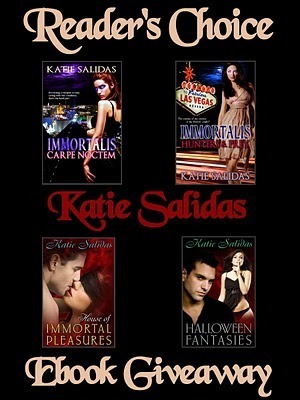 To enter, please leave a comment on this post including your email address (so we may send your Smashwords ebook code if you win) and choice of ebook (Immortalis Carpe Noctem, Hunters and Prey, Halloween Fantasies, or House of Immortal Pleasures). Giveaway ends January 26th midnight EST.