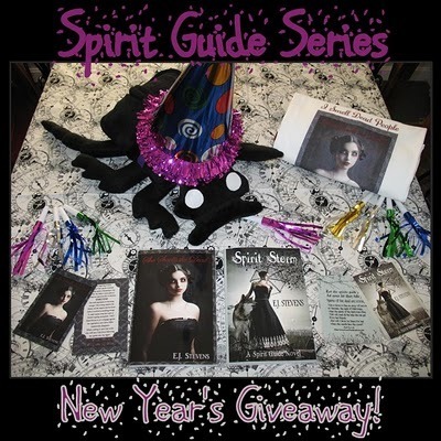 , the first two books in the Spirit Guide Series by E.J. Stevens, Spirit Guide Series postcards, and an "I Smell Dead People" t-shirt (size XL).**Spirit Guide Series New Year's Giveaway**