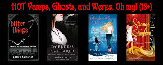 HOT Vamps, Witches, and Weres. Oh my! (18+) Prize Pack: Bitter Things by Andrew Valentine, Darkness Captured by Delilah Devlin, Strange Neighbors by Ashlyn Chase, Blonde with a Wand by Vicki Lewis Thompson.