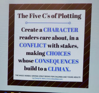 Conflict is essential for a good story to develop, a point that was echoed by a slide in Gary Metivier’s presentation at the recent Children’s Literature Festival. I took a photo and saw that the slide originally came from The Magic Words: Writing Great Books for Children and Young Adults by Cheryl B. Klein.
