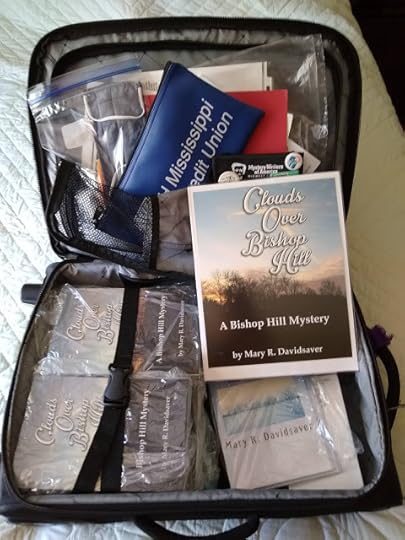 I knew about having a to-go box of books for the car before I went to my first panel discussion, but I was totally amazed when the other authors started rolling in with their to-go suitcases. Basically, it’s your bookshop on wheels. Pack everything you might possibly need to set up a table or booth: cash/change, credit card reader, tape, scissors, price labels, tablecloth, book stands, business cards, promotional anything—collect it all then take it with you. Yes, these days it includes masks.