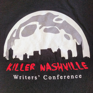 Not wearing a garment leaves it in great condition for an upcoming event such as my reading at RIVER LIGHTS BOOKSTORE in Dubuque this coming Saturday. But do I have the courage to wear a black shirt that has “KILLER NASHVILLE” splashed across the front in blood-red lettering? At least it has “Writers’ Conference” sedately written underneath the crimson headline. The bonus feature is the large moon that peers ominously over the silhouette of the Nashville skyline. This is important because there’ll be a full moon around 4 PM Friday afternoon. Saturday would have been better, but I’ll take what I can get.