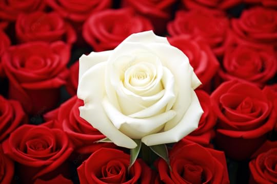 Red roses with one white one in the middle, just because you seen it somewhere and liked it thirty years ago.