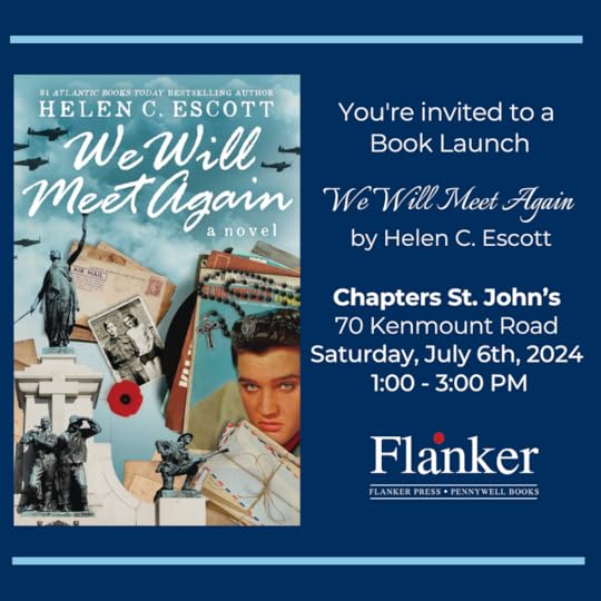 Bestselling, award-winning author Helen C. Escott’s eighth novel, We Will Meet Again, from Flanker Press will be released in July 2024. The book launch will take place Saturday, July 6th from 1-3 pm at Chapters, Kenmount Road, St. John’s.