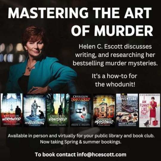 AUTHOR SIGNING: Pick up a signed copy of Operation Masonic at Coles, Avalon Mall Saturday, December 16th from 1- 3 pm. The complete Operation Series is avalable at Coles, Chapters and on line at ,https://www.helencescott.com/