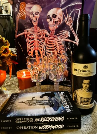 Win the Wormwood Duology (Operation Wormwood & The Reckoning), 2 skull wine glasses, a Halloween tray & 19 Crimes wine.