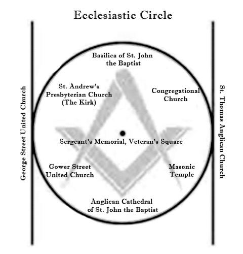 A spelling mistake in a stained-glass window at the Basilica of St. John the Baptist and a Masonic symbol that fits over the map of St. John’s lead to rumours of hidden tunnels under churches and to an unbelievable treasure hunt in the heart of the Ecclesiastical Circle. An area few know about.