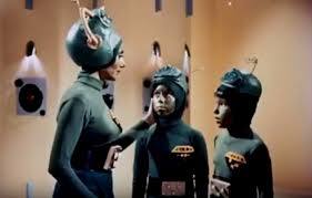 The doorbell rings and the two Martians look at each other. “I wonder who that might be?” says Bleeker.